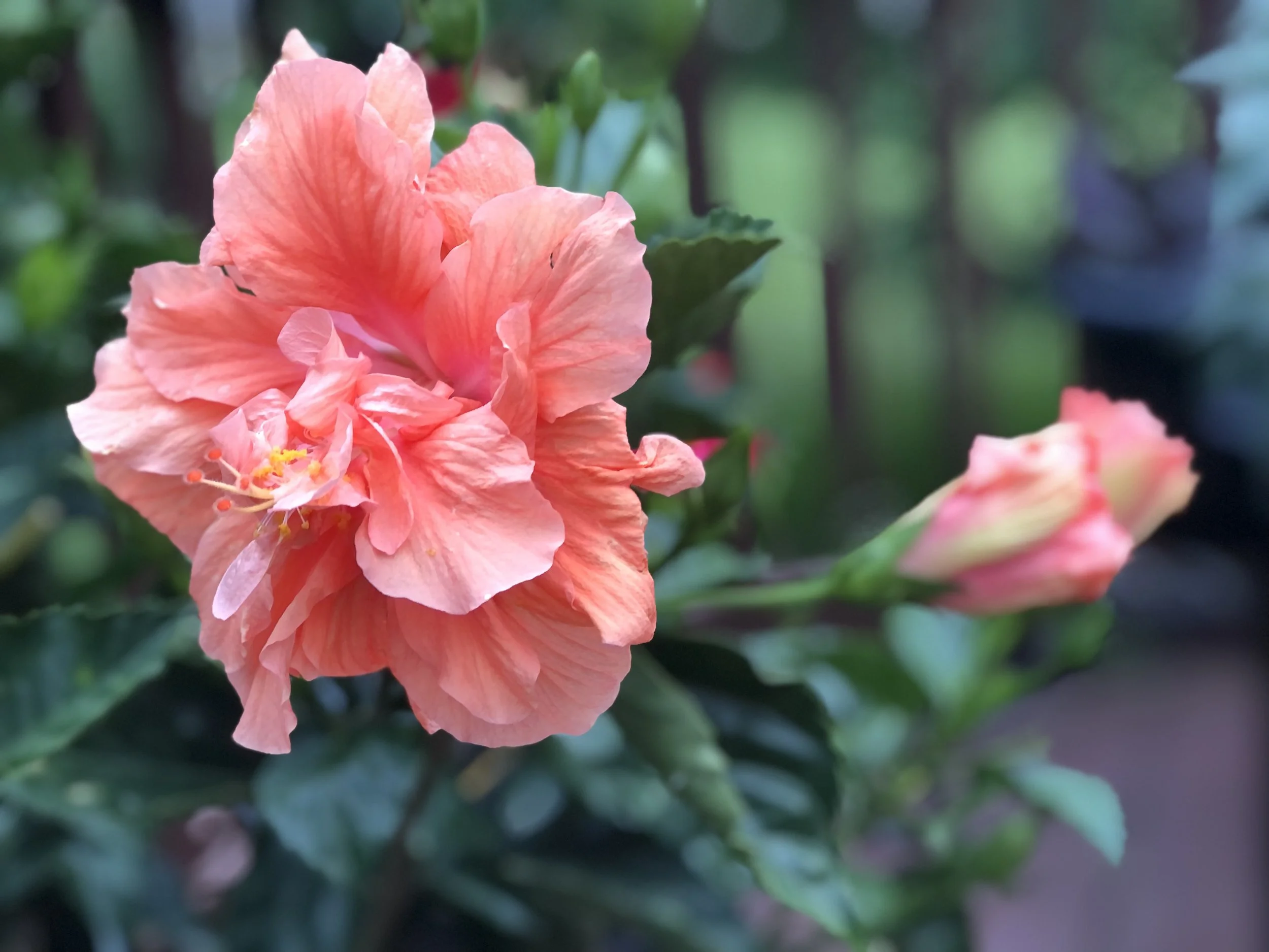 I bought this beauty, a double-flowered hibiscus, from a sidewalk display in front of our local Kroger.