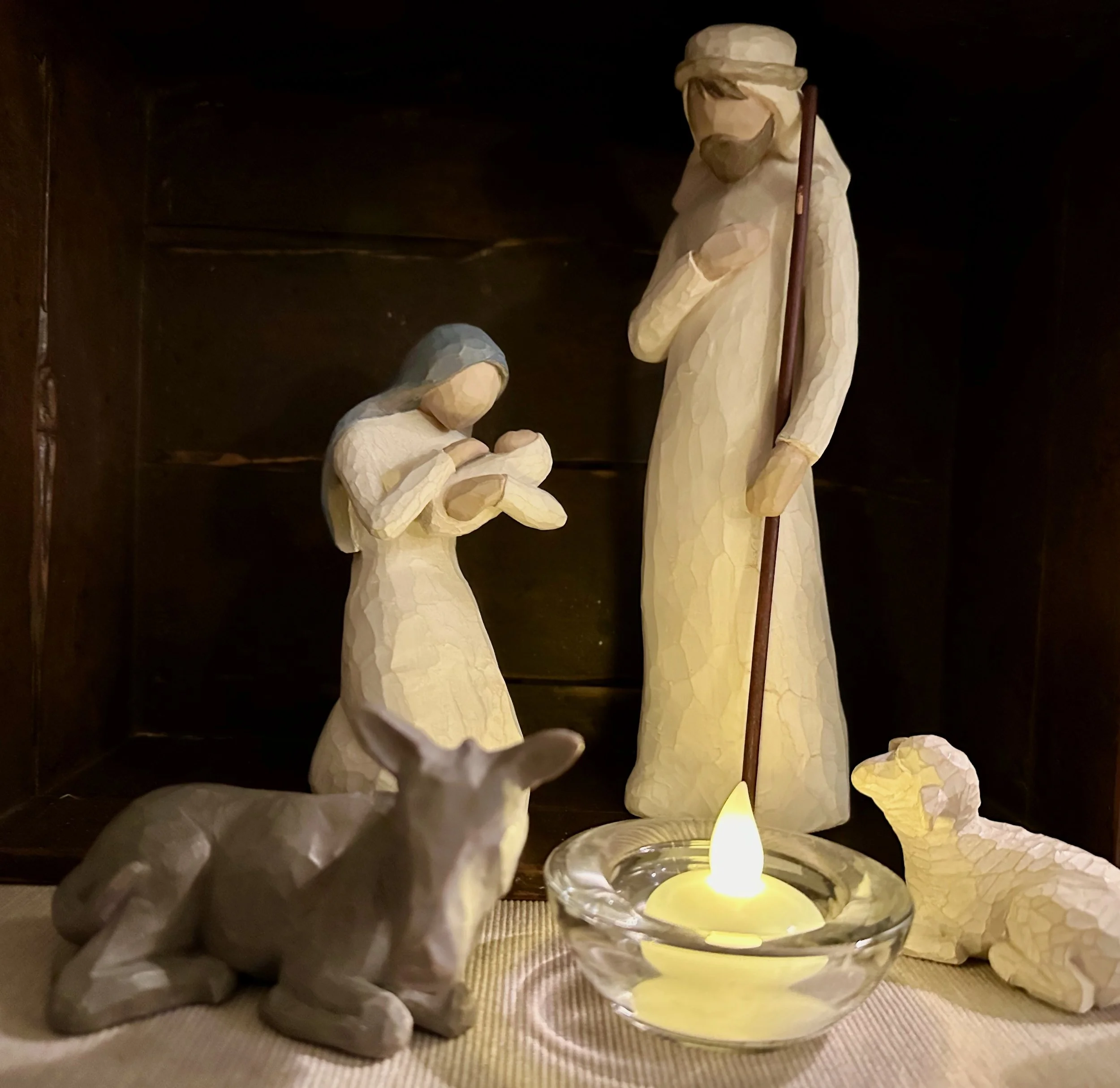 But I do plan to put up the tabletop tree with white lights and glass ornaments that has been a part of our Christmas for decades. And I’ll take Mary and Joseph and a lamb or two from the Willow Tree nativity set that was Evelyn’s favorite Christmas decoration. They’ll fit nicely under this tree on a corner table in our living room.