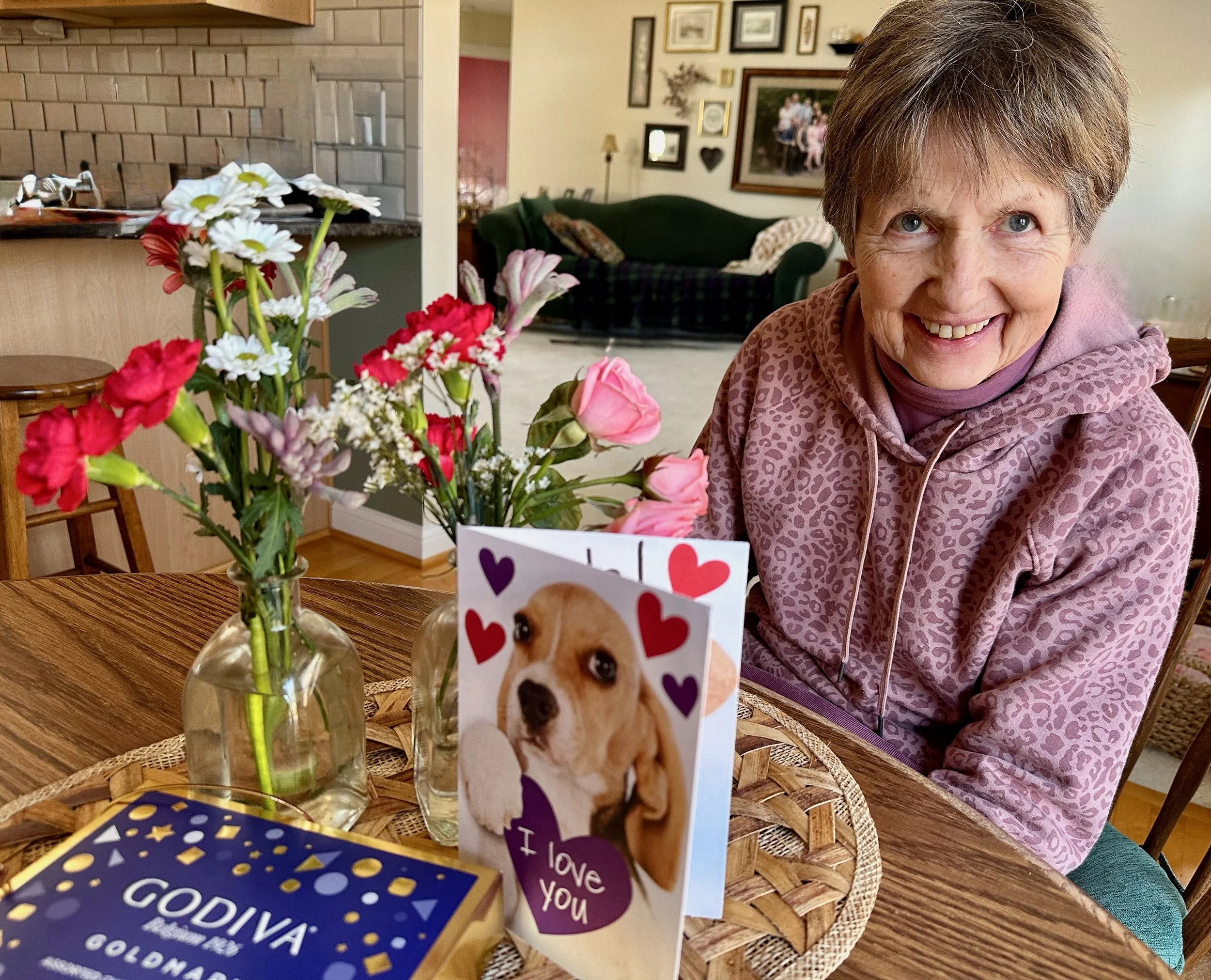 But then Sunday night Google memories sent me pictures I had taken on Valentine’s Day just one year ago. There’s Evelyn, coiffed and smiling beside the silly card I had given her. (I had quit buying sentimental cards she might not appreciate, opting instead for a picture of a cute, long-eared dog I thought she’d enjoy.)